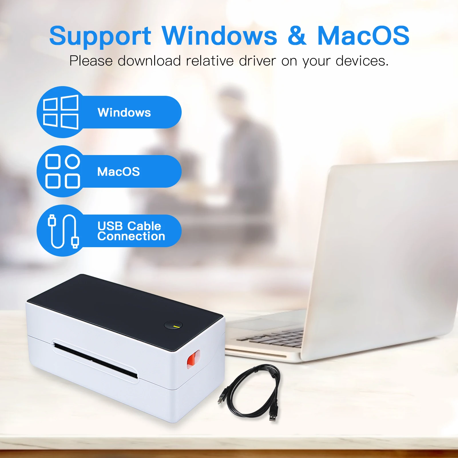 Настольный термопринтер TDL403, поддержка BT и USB-кабеля, совместим с системами Win2003/WinXP/Win7/WIN8/WIN10/MAC/iOS/Android. Загрузите относительное программное обеспечение и драйвер на свои устройства.