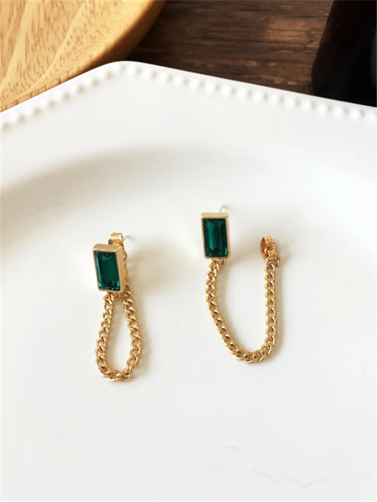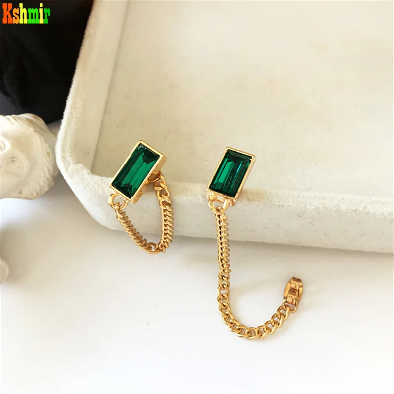 Kshmir Модные Ретро Металлические квадратные изумрудные шпильки для ушей простая индивидуальная подвесная цепочка с кисточками серьги ювелирные изделия подарки 2021