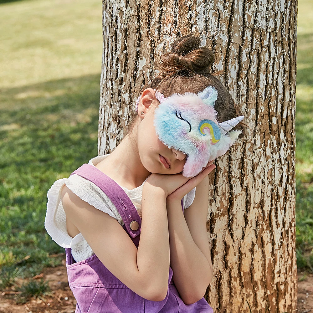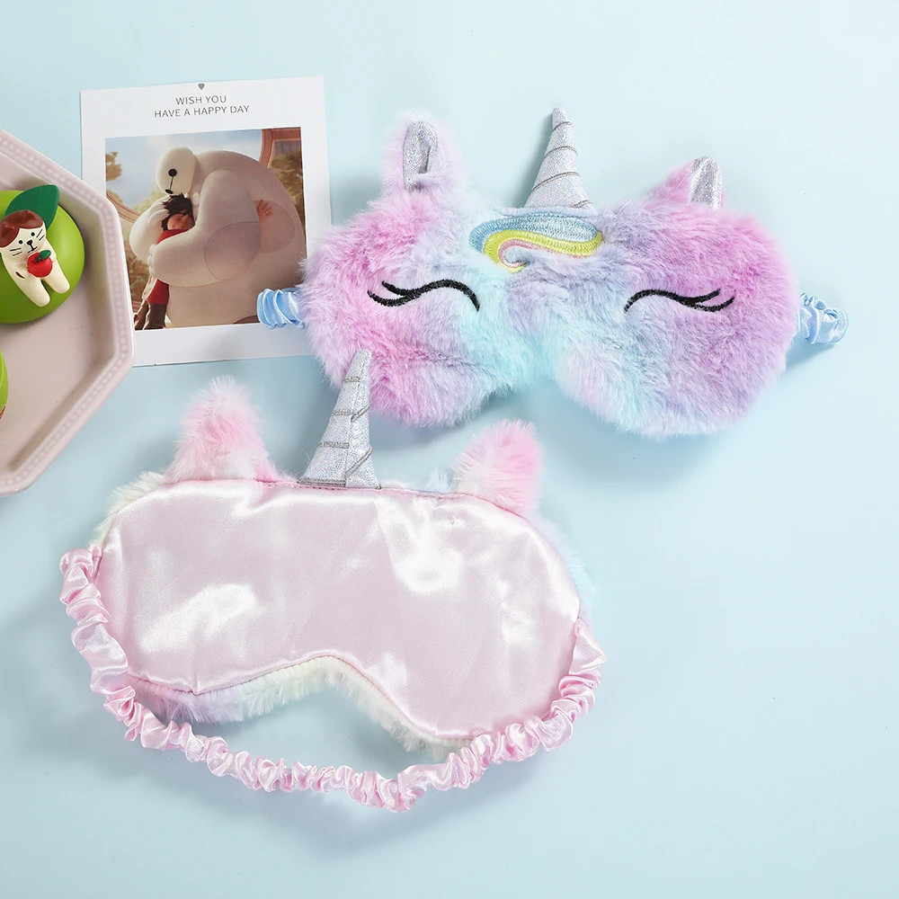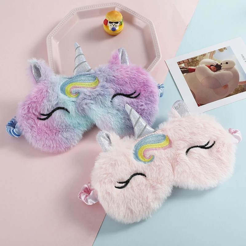 Плюшевая маска для сна для детей с милым единорогом, повязка на глаза для сна, мягкий женский чехол для глаз с животными, с повязкой на глаза