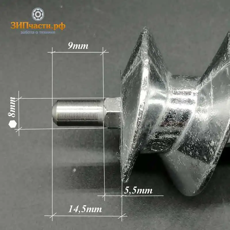 Suitable for Moulinex meat grinders after 2000 Seat under the knife hexagon 8mm, long rod. Screw length 114,5mm.