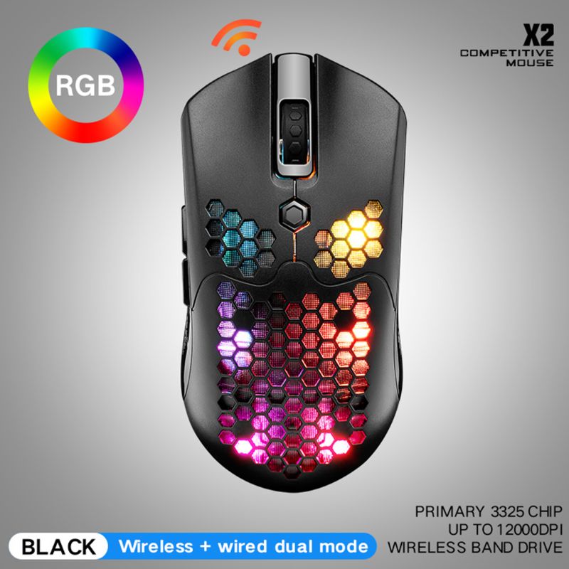 X7AA X2 12000DPI Двухрежимная игровая мышь с 7 клавишами, дизайнерская беспроводная мышь с эффектом RGB, светильник для ноутбука, компьютера