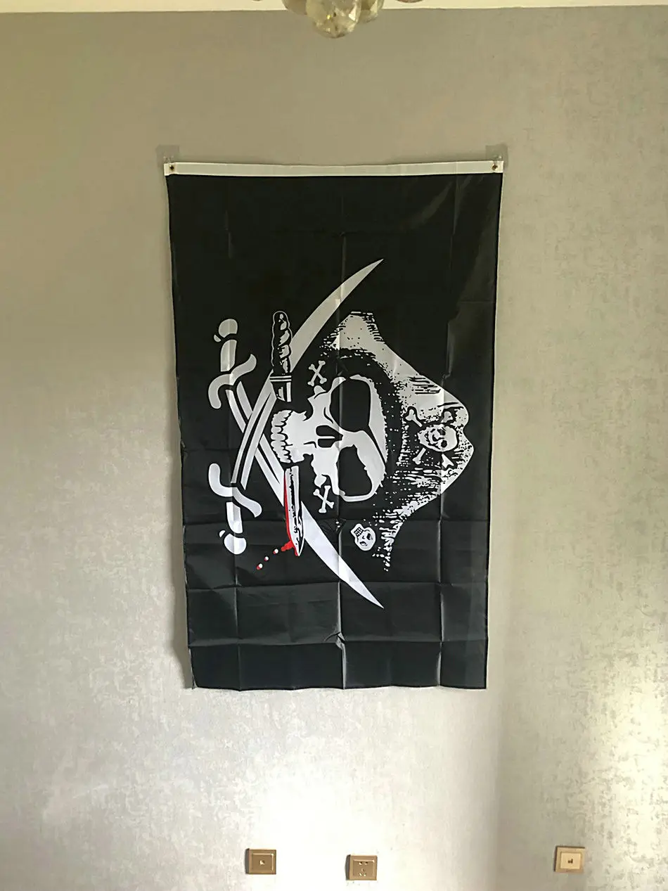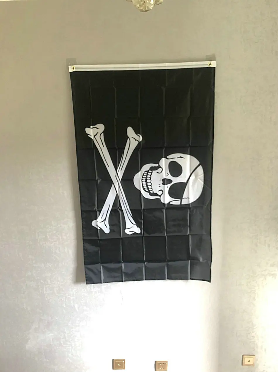 Бесплатная доставка 3*5 футов Джек Rackham Череп кости пиратский крест кости Пиратский Флаг 100% полиэстер принт пиратский Jolly Roger флаг