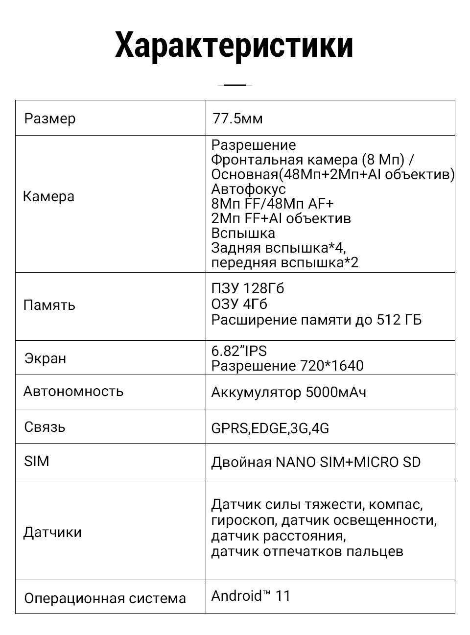 Характеристики