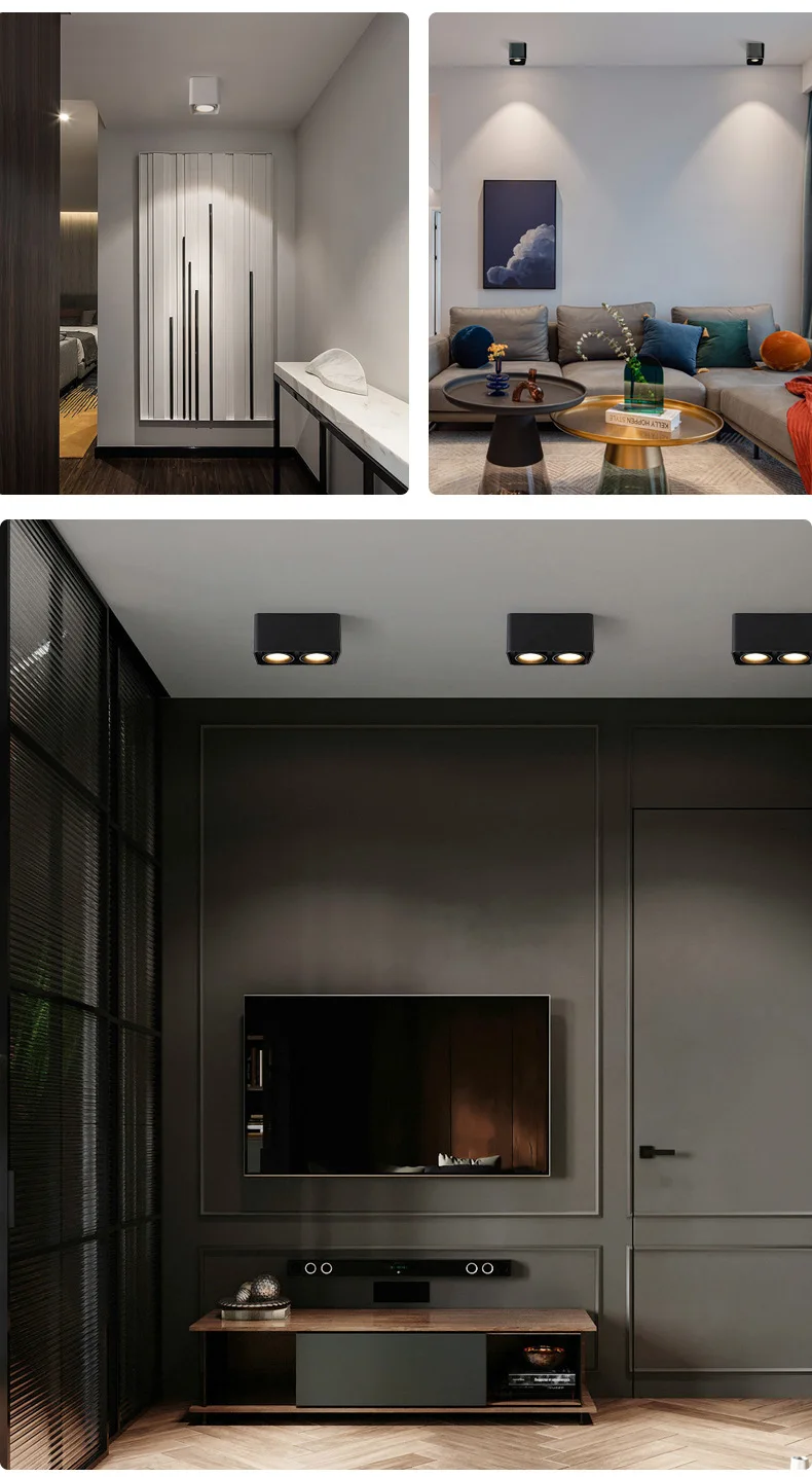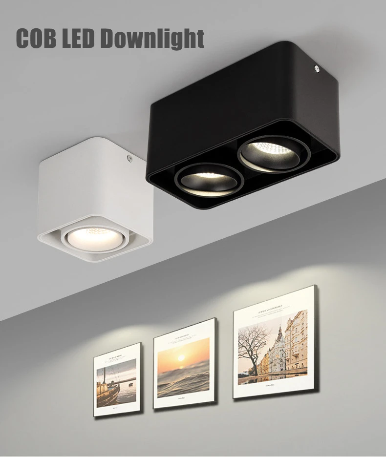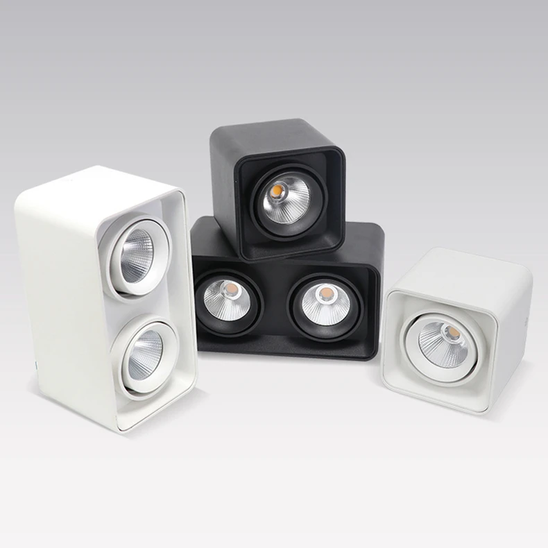 Квадратный светодиодный потолочный светильник с регулируемой яркостью 7 Вт 10 Вт 12 Вт 30 Вт COB Точечный светильник с одной/двойной головкой Регулируемый поверхностный потолочный светильник