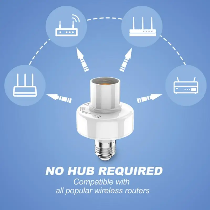 Функция синхронизации: не требуется концентратор, розетки совместимы с большинством Wi-Fi роутеров. Ввинтите гнездо лампы, вы можете превратить вашу обычная лампа в интеллектуальную (smart), сохраняя свой стиль! Установите таймер и обратный отсчет, или создайте сцены, светильник крыльца может автоматически включаться ночью и выключаться утром