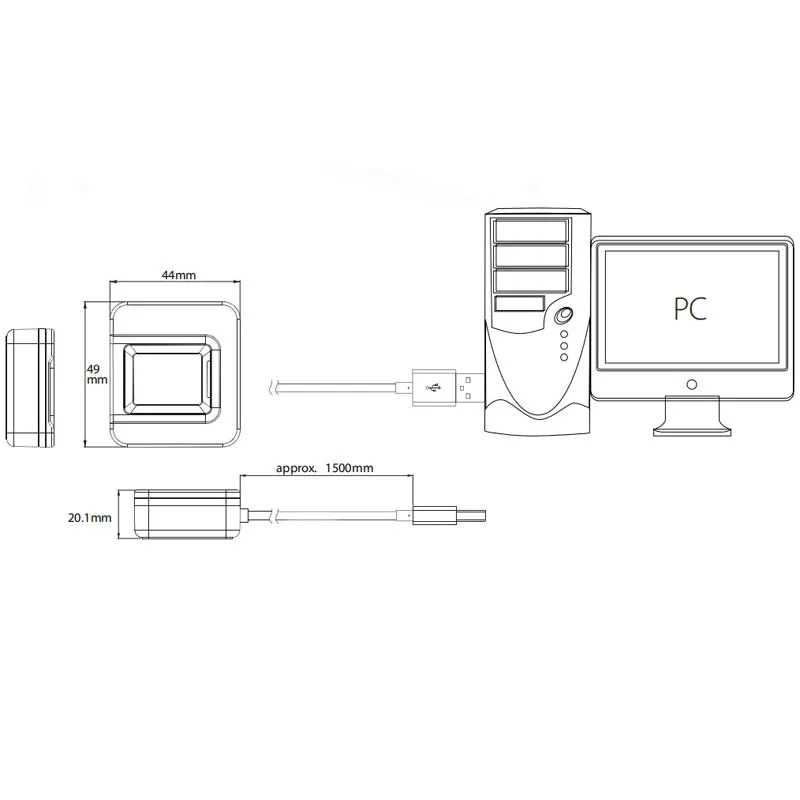 Разрешение пикселей500DPIРазмер изображения300*400 пикселей (FAP20)МатериалОптическийСвязьUSB 2,0/USB1.1Разъем интерфейсаUSB Type AШаблонZKFinger V10.0Операционная системаWindows,Android,LinuxСоответствие стандартам15,24*20,32 мм (FAP20)Вес120 граммРабочая среда-10 °C ~ + 50 °CSDKБесплатноРазмеры49,5*43*20