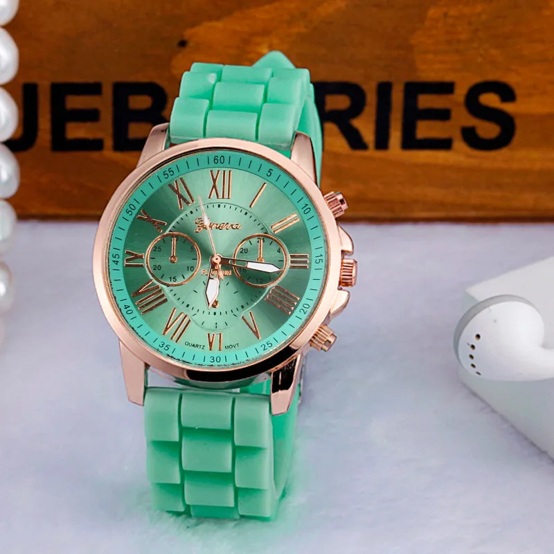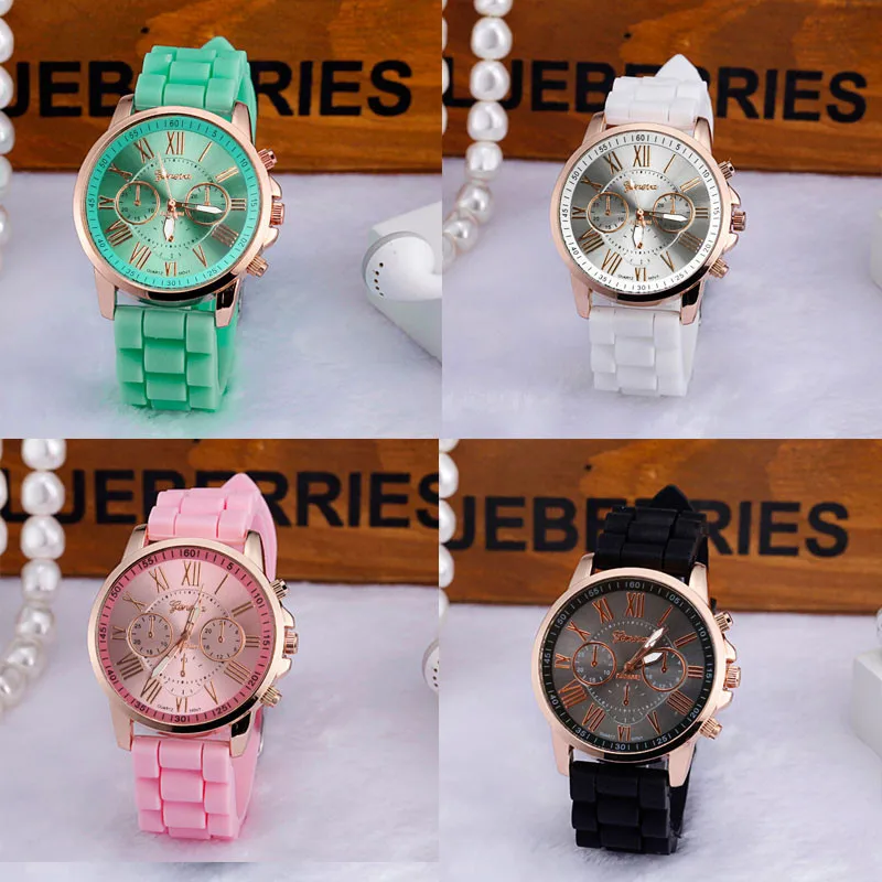 Geneva женские римские цифры Силиконовые Желе Гель Кварцевые аналоговые наручные часы