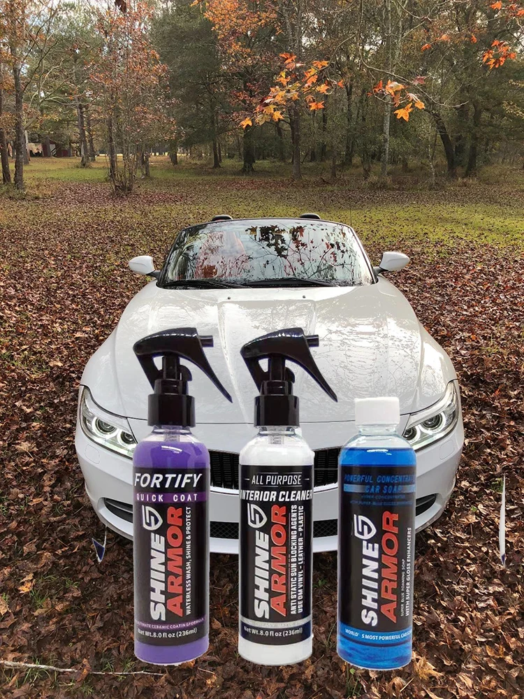 Усовершенствованная формула 3 в 1. Наша сила-это ваш гидрофобный спрей с керамическим покрытием. Shine Armor укрепляет керамический воск автомобиля обеспечивает безводную стирку, пальто и блеск, все в одном удобном продукте.