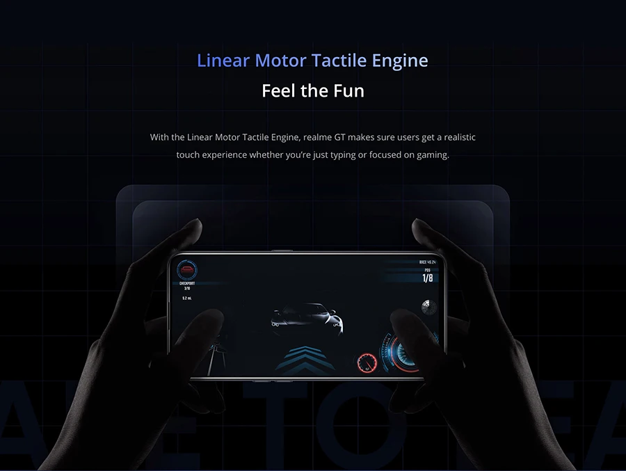 With the Linear Motor Tactile Engine, realme GT makes sure users get a realistic touch experience whether you’re just typing or focused on gaming.