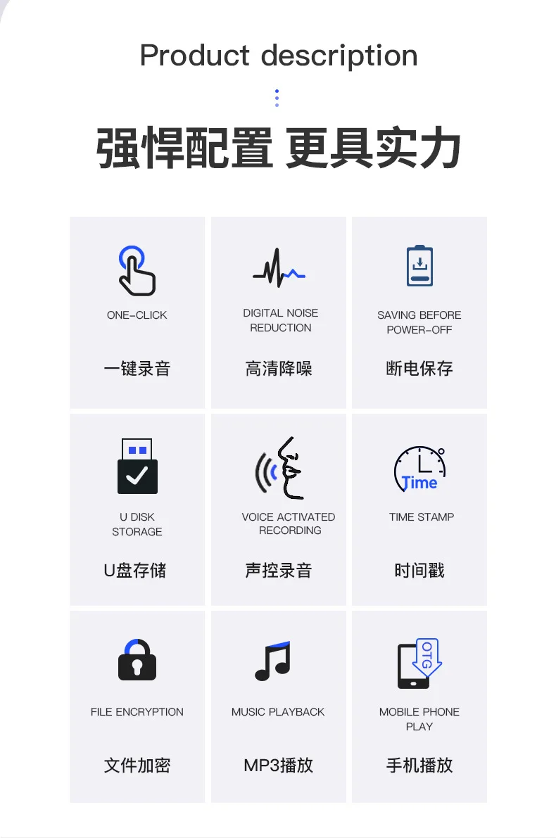 Когда окружающий звук больше 30 децибел, регистратор начинает запись снова, экономя питание и память.