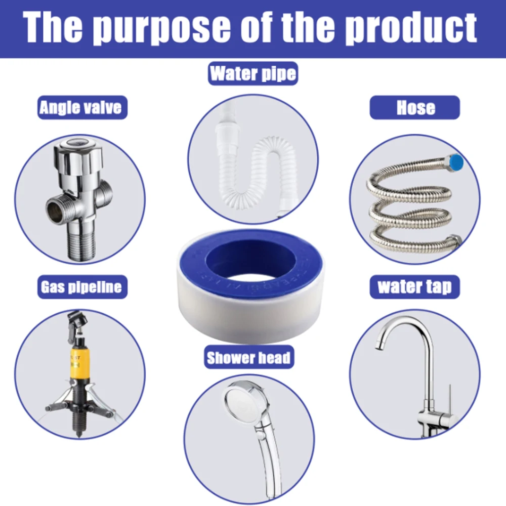 Широко применяется: герметизирующая лента подходит для большинства видов мягких водопроводных труб, создавая герметичные уплотнения между резьбовыми трубами и фитингами; Работает как для воздуха, так и для воды, предназначена для использования дома и трубопроводов