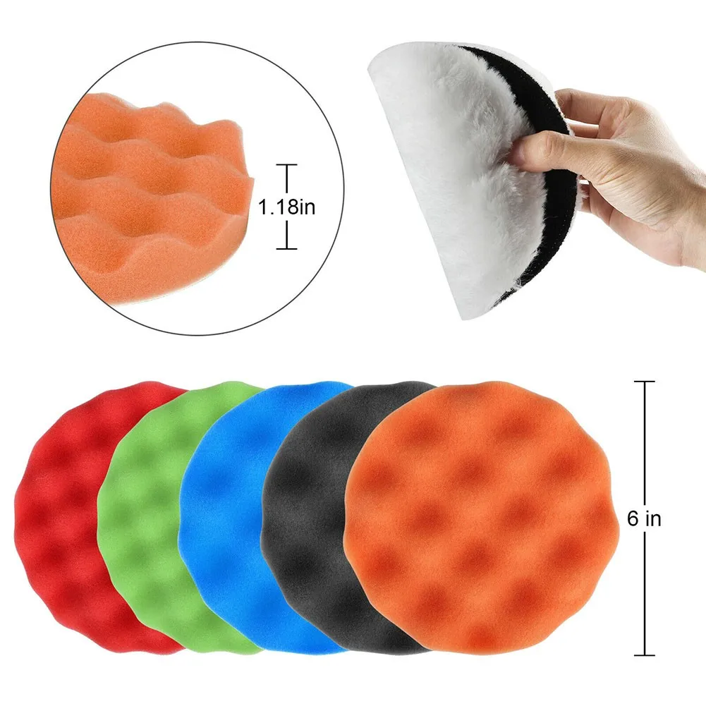 * Есть пять различных цветов губчатой подкладки, твердость: оранжевый> красный> зеленый> черный> синий, эффективная резка и полировка наиболее сложного окислительного покрытия автомобиля, царапин.
