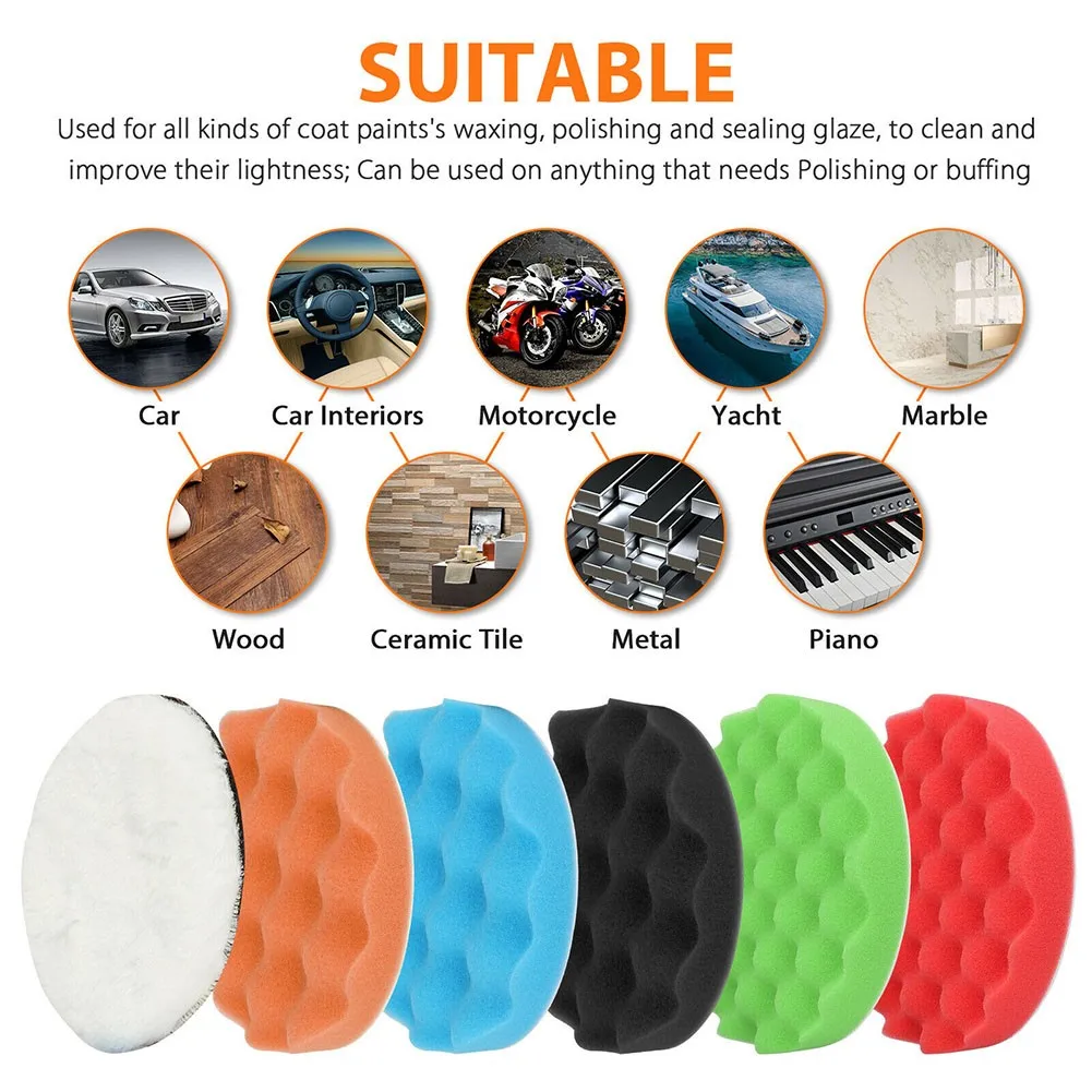 Может использоваться на любом, что требует полировки или полировки, например, автомобили, фургон, стекло, камень, керамика и т. д. губчатая волновая прокладка в основном используется для полировки, шерстяная подкладка используется для воска.