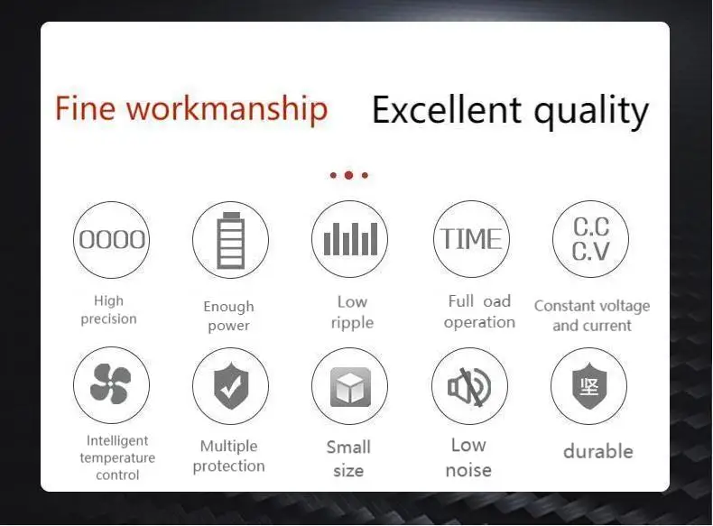 Уведомление перед заказом Он содержит два пакета программного обеспечения: Четырехзначный дисплей 0,01 V/0,001 a 1. Gps3010d постоянного источника питания с дисплеем питания 30В 10A 2. Gps605d постоянного источника питания с отображения мощности 60V 5A 3. Gps305d DC источник питания с дисплеем питания 30v5a Характеристики продукта Источник питания постоянного тока серии GPS-это один выход, синий двойной цифровой трубчатый дисплей, источник питания постоянного тока. Машина в комплекте Вся функция защиты операции имеет характеристики высокой эффективности, низкой пульсации, высокой стабильности и объема светильник. Ограничительная защита тока может Защита GPS питания и нагрузки от случайного повреждения. Блок питания серии GPS имеет схему контроля температуры, интеллектуальное рассеивание тепла и низкий уровень шума. 1. Высокая эффективность и высокая мощность 2. Низкая пульсация, малый объем и светильник 3. Двойной светодиодный дисплей напряжения и тока, высокая точность 4. Стабильное напряжение, ограниченный ток и простая работа 5. Двойной вход напряжения, легко выбрать 6. Вентилятор с регулируемой температурой для рассеивания тепла, низкого шума и длительного срока службы 7. Выходное напряжение колеблется от 0 до номинального напряжения и может регулироваться непрерывно. 8. Диапазон выходного тока от 0 до номинального тока, постоянно регулируется 9. Функция защиты от короткого замыкания, выход остановки короткого замыкания, защита от перегрузки, защита от перегрева. 10. Переменный ток 110 В и 220 В может работать, пожалуйста, не стесняйтесь выбирать (Пожалуйста, обратите внимание на напряжение при покупке Вход напряжение: AC 220 V / 110 V 50 / 60Hz 。 Стабильное значение выходного напряжения: 0 ~ 32 В, постоянно регулируется. Выходное значение постоянного тока: 0 ~ 10.2a, постоянно регулируется. Напряжение пульсации: VPP ≤ 1% Общая эффективность: ≥ 89%. Цифровой дисплей: четыре светодиодный дисплей с синей трубкой nixie. Разрешение дисплея: 00,01 в/0.001a Точность отображения: 5% + 3 цифры. Рабочая температура: (- 10 ~ 40) ℃. Функция продукта 1. Тест производственной линии. 2. Мобильный телефон, техническое обслуживание, техническое обслуживание компьютера, электрическое обслуживание, автомобильный DVD, аудио автомобиля. 3. Старение продукта, Гальваника, такие как резистор, конденсатор, реле, двигатель постоянного тока, светодиод и т. д. 4. Зарядка аккумулятора. 5. Лаборатория, научные исследования и обучение, завод, техническое обслуживание и источник питания. Использование производственной линии для научных исследований в школьной лаборатории 6. Во всех других случаях требуется источник питания постоянного тока. Посылка включает в себя 1 Источник питания постоянного тока 1 х шнур питания (ЕС, США, Великобритания, Австралия) 1 крокодиловый лес 1 x Инструкция