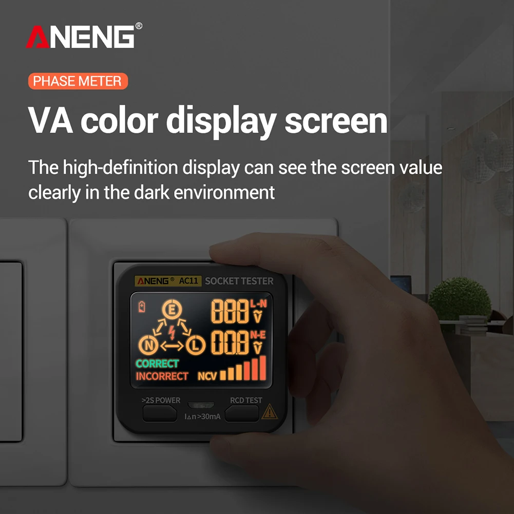 ANENG AC11 Smart Socket Tester в основном используется для обнаружения полярности розетки и безопасности выключателя утечки, который может быстро и точно обнаруживать проводку розетки. В то же время напряжение розетки может быть Протестировано и отображено на светодиодный экран ЖК-дисплея.