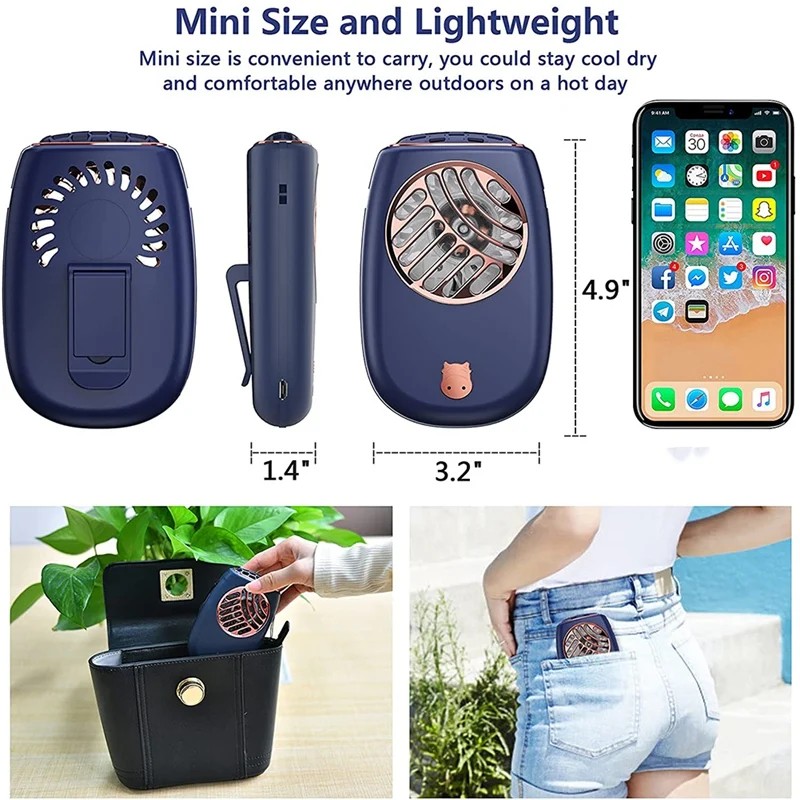 Портативный и удобный-маленький и светильник, вы можете повесить его на шею с помощью шнурка (20-59 дюймов/около 50,8-149,9 см). Вы можете закрепить веер на штанах или сумке через плечо с помощью зажима. Есть складной кронштейн (на зажиме), так что личный вентилятор может стоять и стать настольным вентилятором, даже если вентилятор работает. Освободите руки в любое время и в любом месте.