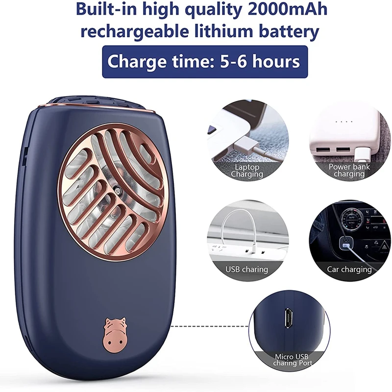 Встроенный аккумулятор емкостью 2000 мАч-этот портативный Электрический вентилятор можно заряжать. Портативный шейный вентилятор оснащен usb-кабелем, который совместим с любым usb-портом, таким как ноутбуки, мобильные источники питания и usb-зарядные устройства. Срок службы батареи: 2-6 часов (после полной зарядки)