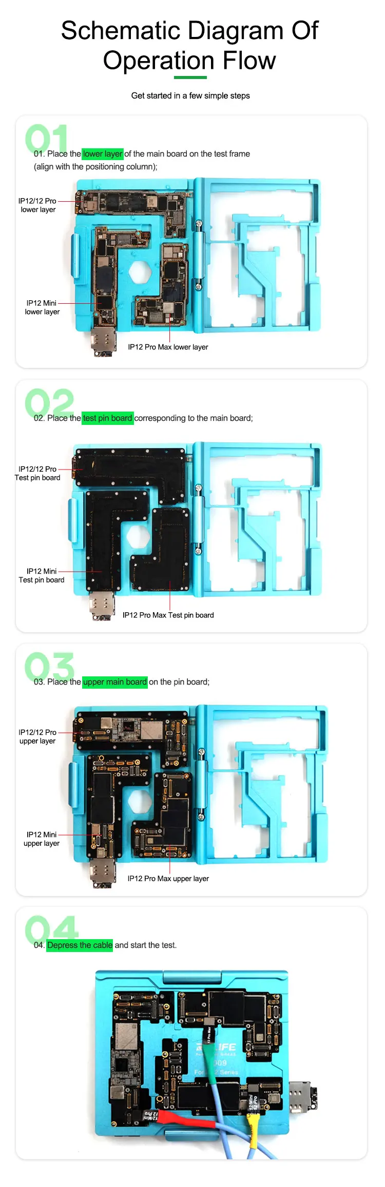 Motherboard Mid-level Tester For IP12 Pro Max Mini 4-in-1 Double-Ended Spring Probe Non-Slip Test Fixture
