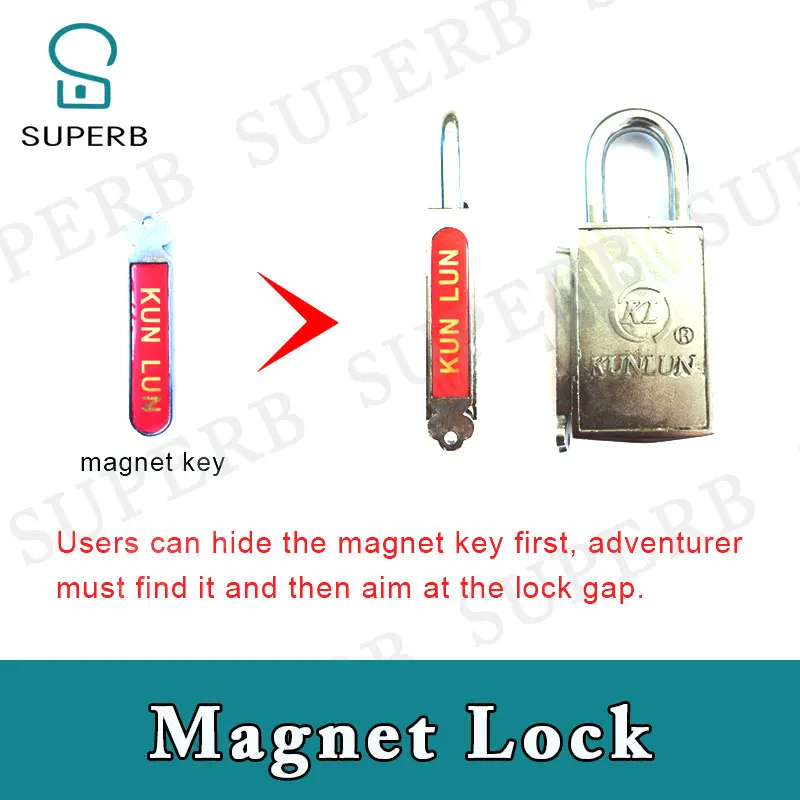 Это должно быть использовано в реальной жизни комнате побега игры. Пользователи могут сначала скрыть магнитный ключ, искатели приключений должны найти его, а затем нацелиться на зазор замка. Пожалуйста, приложите свои силы, чтобы вытащить замок.