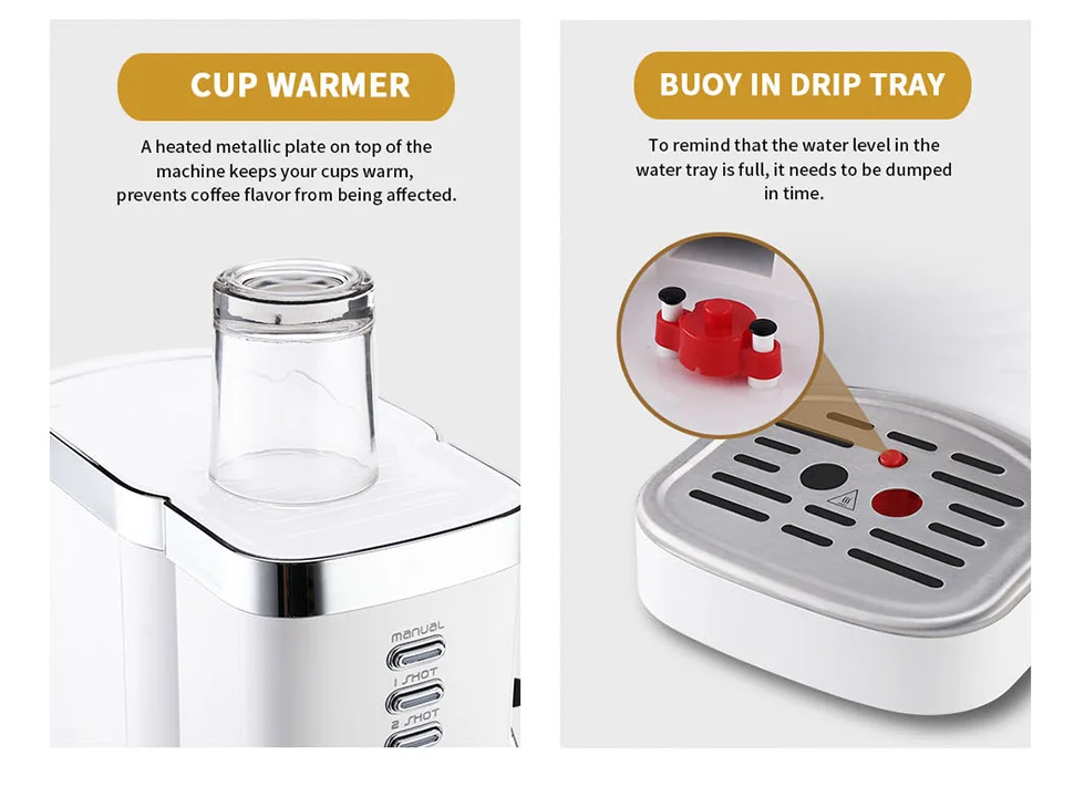 ✔【 3 специальные функции: Есть три функции, которые вы можете выбрать, ручное управление количеством кофе самостоятельно. 1 выстрел-заваривать около 30 мл количества кофе. 2 раза-заваривать около 60 мл количества кофе.