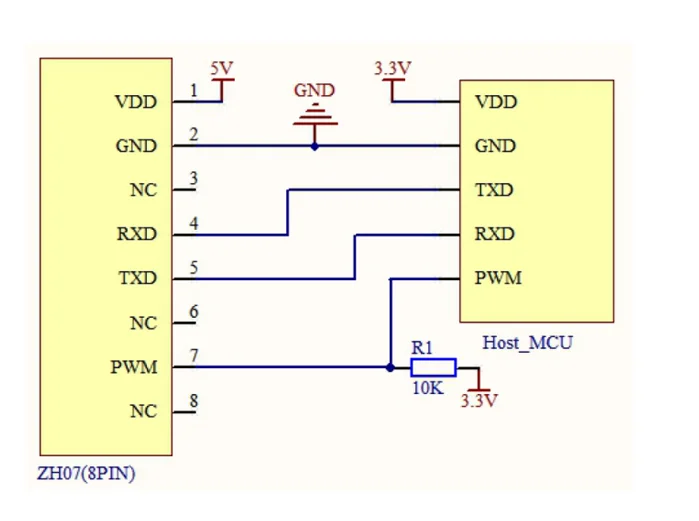 ZH07 является универсальным, миниатюрным лазерным датчиком пылиМодуль использует принцип рассеяния Mie дляОбнаружение частиц пыли. Протестировано профессиональными алгоритмами и калибровкойОбработка процесса, датчик имеет хорошую консистенцию и стабильность.Датчик имеет как последовательный выход, так и Выход PWM, что удобноИспользование, малый размер, легко интегрировать применение.Особенности:Хорошая консистенцияОтвет в реальном времениТочные данныеНизкое энергопотреблениеДискретность частиц Диаметр 0,3 мкмПрименение:Очиститель воздуха,Система свежего воздуха,Портативный инструмент,Монитор качества воздуха,Кондиционирование воздуха,Поддержка бытовой электроники и другого оборудования.Параметр:Обнаружения частиц размерный ряд: 0,3-10μmЭффективный диапазон: 0-1000 мкг/м³Интервал обнаружения: 1sТочность обнаружения PM2.5: 0-100 мкг/м³: ± 15 мкг/м³; 101-1000 мкг/м³: ± 15% показания (условия тестирования: 25 ± 2 ℃, 50 ± 10% RH, TSI8530, сигарета, GBT18801- 2015)Время стабилизации питания: 30sВыход данные: UART _ TTL Выход (3,3 V уровня, по умолчанию)ШИМ-выход (3,3 V уровня, по умолчанию)Рабочее напряжение: 4,8 V ~ 5,5 V(DC)Рабочий ток: <120 мАТок в режиме энергосбережения: <20 мАВремя отклика: T90<30sРабочая влажность: 0 ~ 80% относительной влажности (без конденсации)Рабочая температура: -10 ~ 60 ℃Температура хранения: -30 ~ 70 ℃Вы знаете?