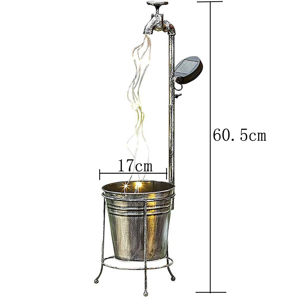 4. Этот Солнечный кран серии водяных ламп расширяет вашу любовь к промышленному украшению в сад. Он имеет несколько струн светильников, висящих вниз, излучающих струящаяся вода.