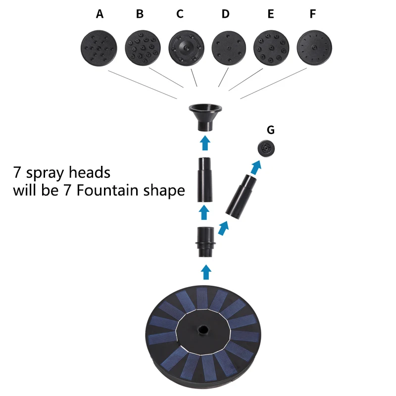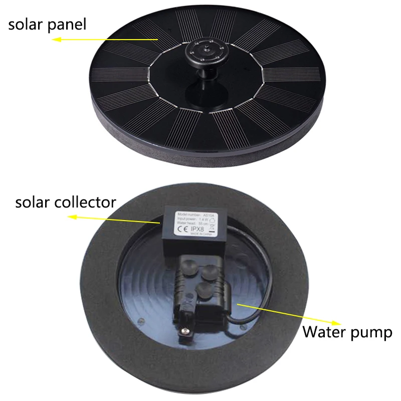 1 Этот продукт является солнечным водным насосом без внешнего аккумулятора. Высота распыления воды полностью зависит от силы Солнца. При слабом солнце насос не будет работать непрерывно, но автоматически начнет работать до тех пор, пока солнце не достигнет определенной интенсивности насос не начнет непрерывную работу. При использовании, пожалуйста, поместите продукт в свободный солнечный свет. Затенение повлияет на нормальную работу насоса.