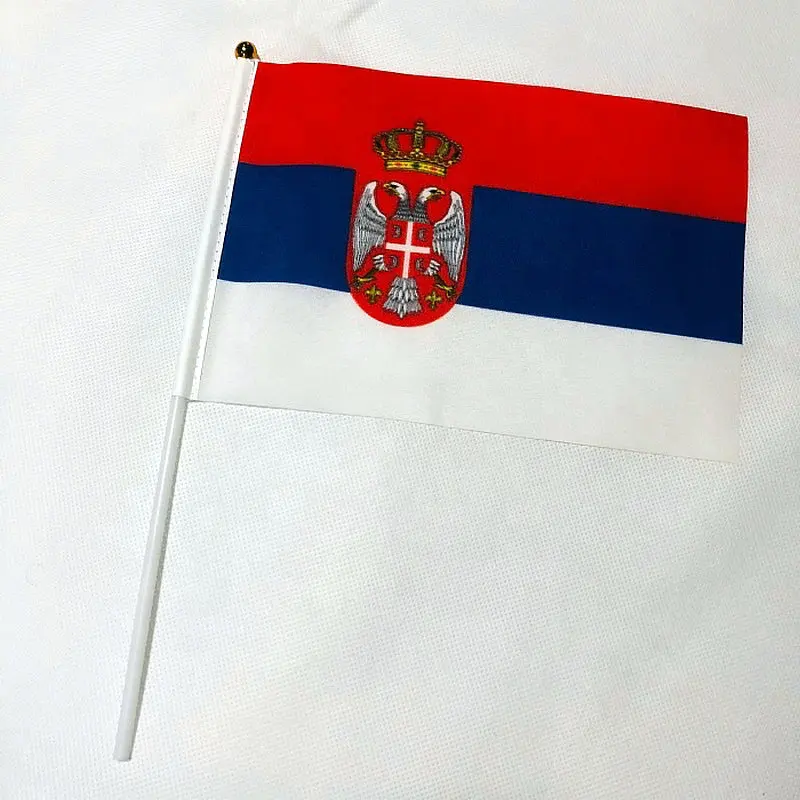 ZXZ Serbia ручной флаг 14*21 см 100 шт. полиэстер двусторонняя печать сер сербийский ручной флаг с пластиковым флагштоком
