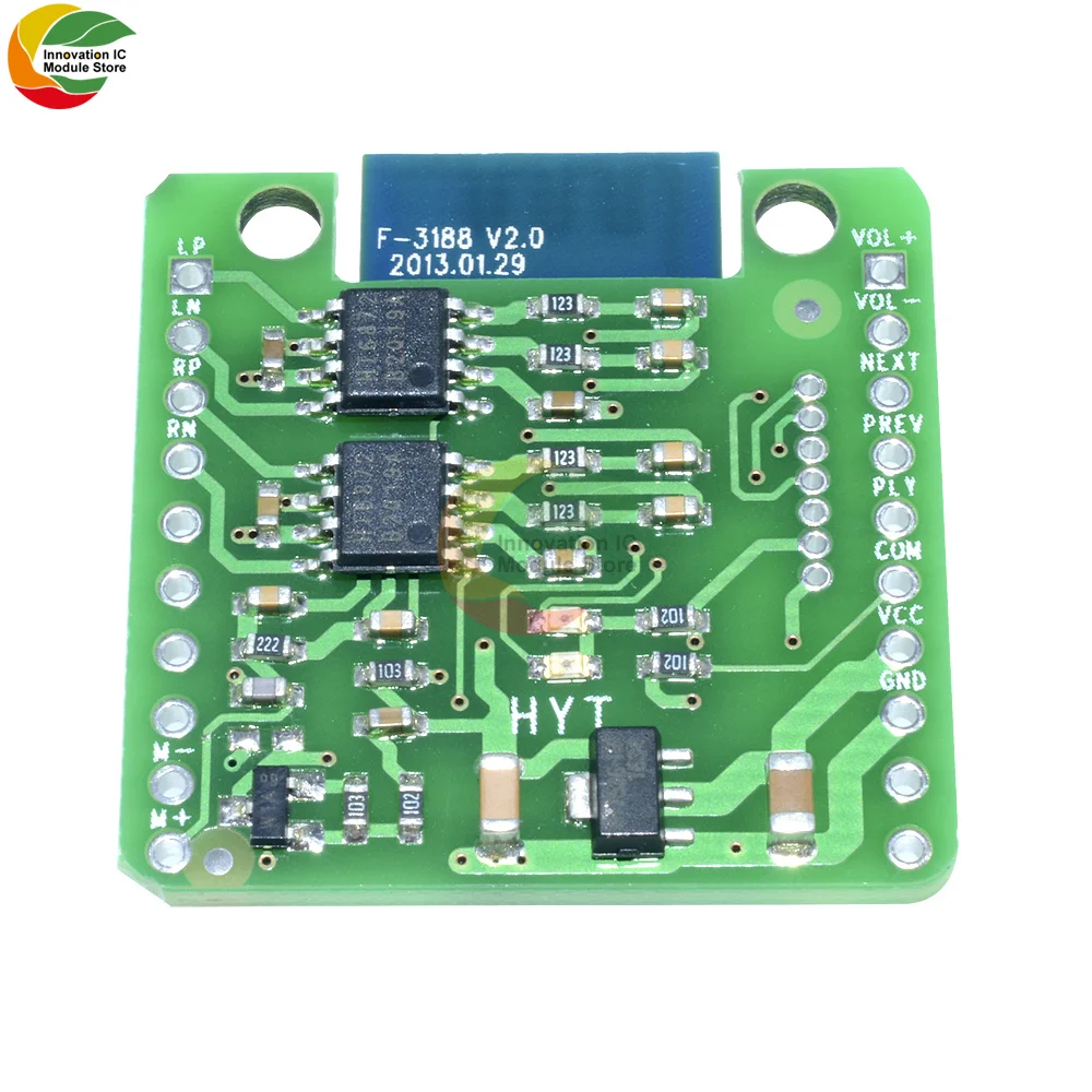 Использование TI amp TPA6132, лучшее качество звукаGND и короткими рукавами «летучая мышь», питаются от 3,7 V литиевая батареяGND и VCC 5V или 12 источник питания, согласно выбору изоляции постоянного токаOUTL, AGND, OUTR для сбалансированного выхода, может быть непосредственно подключен к наушникам, усилителям, аудио и другим входным устройствамCOM является общей стороной ключа, другой конец ключа затем VOL +, VOL-, PREV, NEXT, PLYM + и M-это положительный и отрицательный микрофонРазмер: 2,9x2,9 см