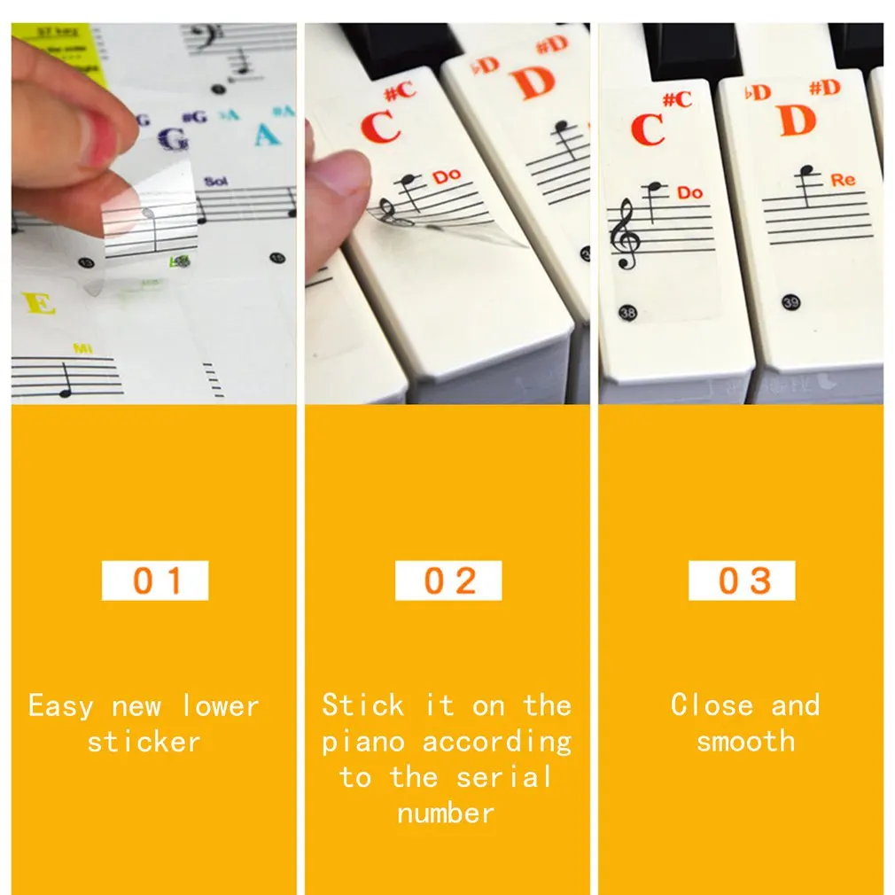 Фортепианная наклейка для ключей-съемное покрытие для 88 клавишных надписей для персонала наклейки для фортепианной клавиатуры красочные наклейки