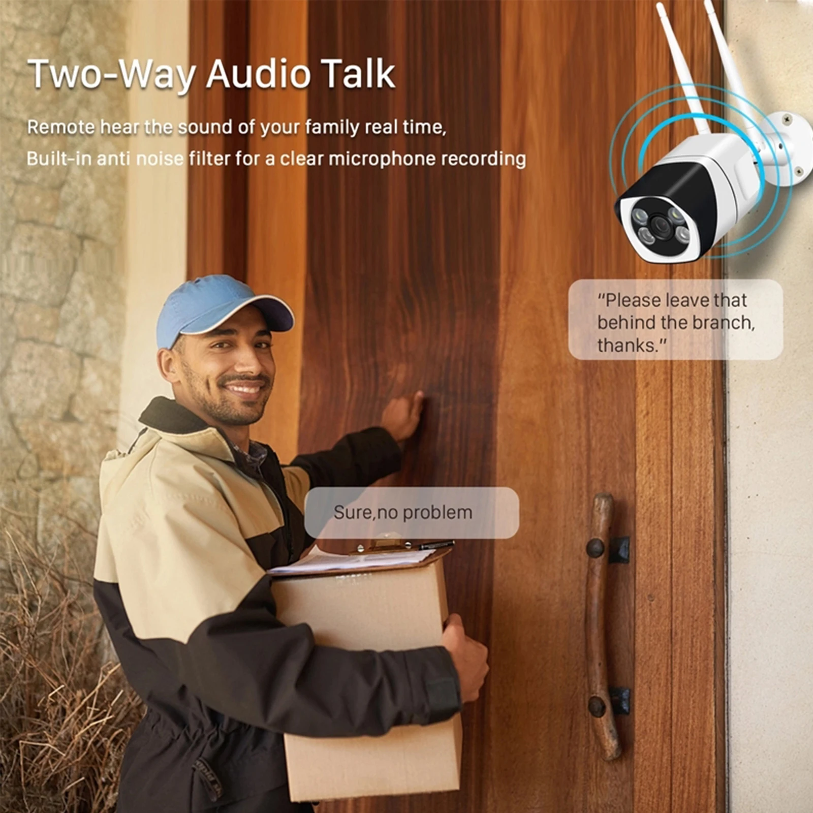 Четкое двустороннее аудио:Беспроводная камера безопасности Встроенный микрофон и динамик, четкое качество звука и позволяет общаться с семьей и домашним животным
