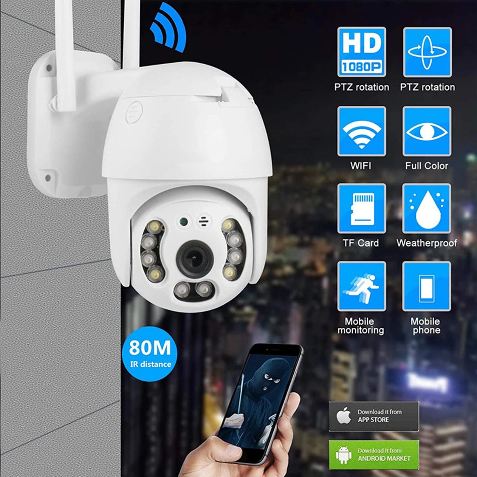 Описание:Беспроводная камера безопасности с разрешением 1920*1080 обеспечивает четкое видео 2 МП днем и ночью. 355 ° по горизонтали и 90 ° по вертикали обеспечивают панорамный обзор на 360 ° без слепых зон. Уведомления APP будут отправлены на ваш телефон, как только наружная камера безопасности обнаружит движение, тогда вы сможете удаленно получить доступ к камере наблюдения для просмотра происходящего. Водонепроницаемая конструкция IP66 делает беспроводную камеру подходящей для использования внутри и снаружи помещений