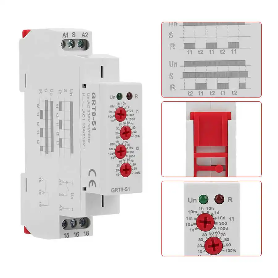 GRT8-S1 мини Асимметричная цикл таймер на включение/выключение повторный цикл реле времени AC 230V