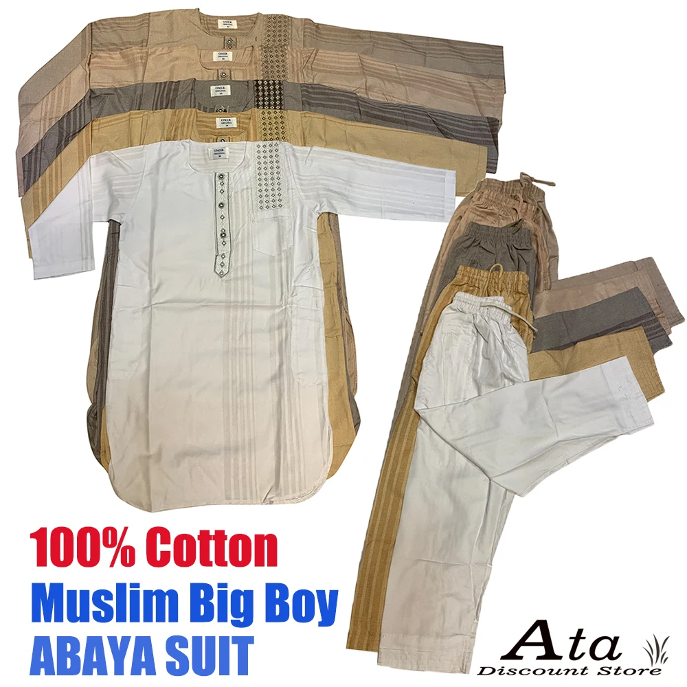 100% хлопок Абая для мусульман, Дубай Big Boy Jubba Тауб для детей Оман Djellaba вышивка кафтан Пакистан молитва костюм Новое поступление