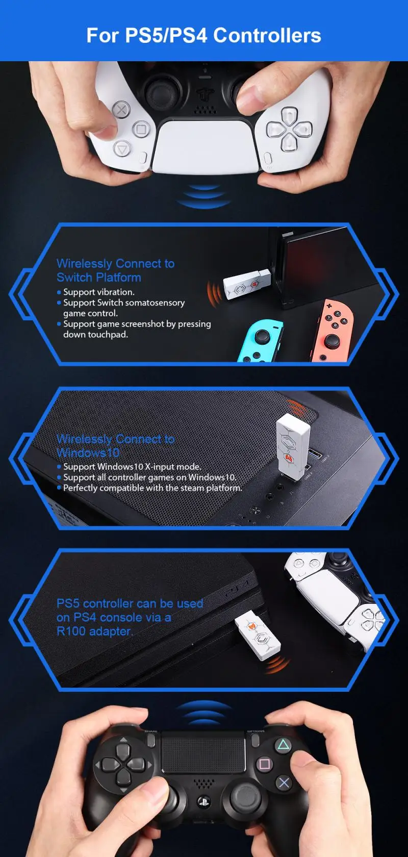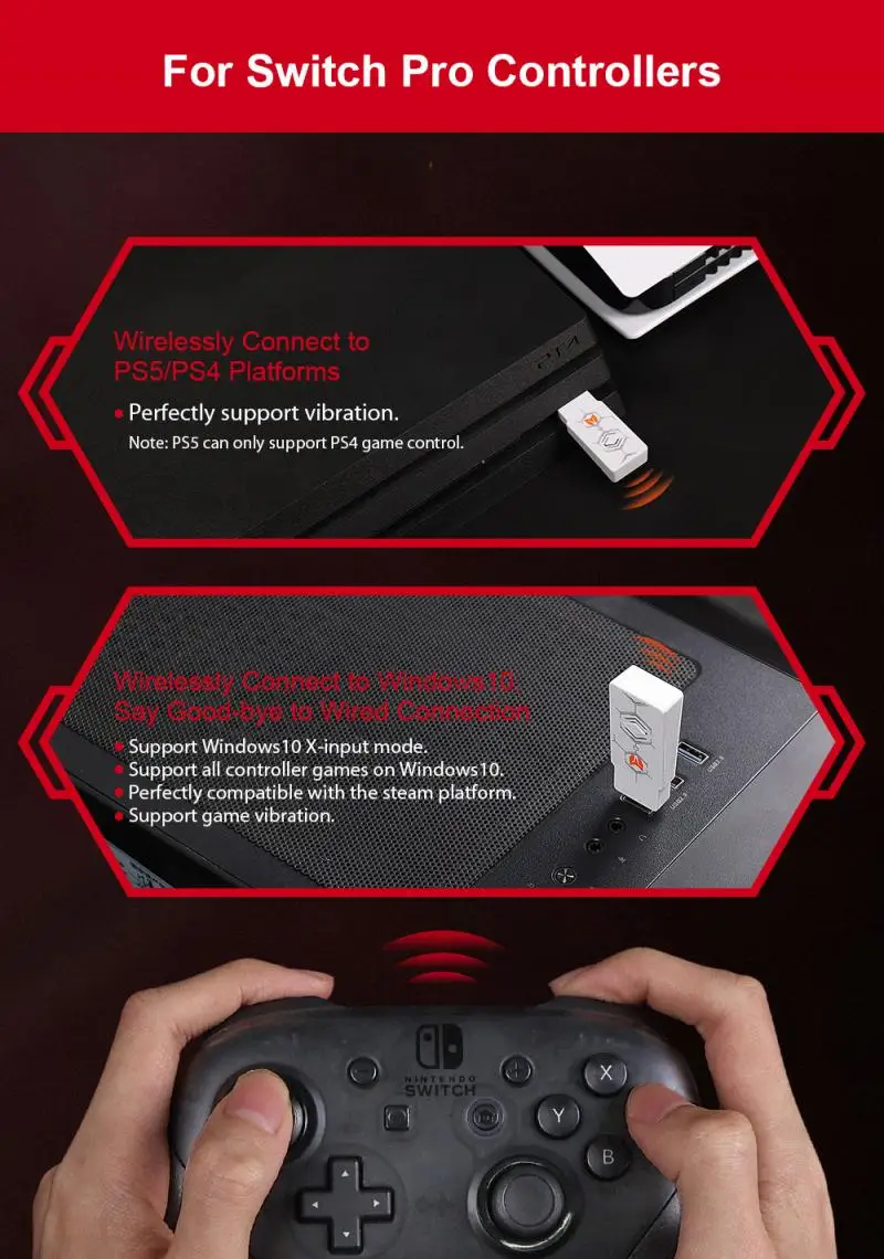 5) передача на PS4/PS5: Беспроводная передача вышеуказанного контроллера на платформу PS4/PS5 для использования.