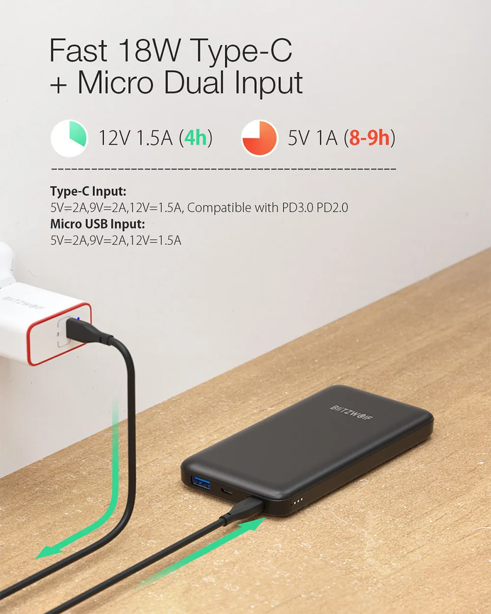 Fast Charging Type-C Input: Compatible with PD3.0 PD2.0