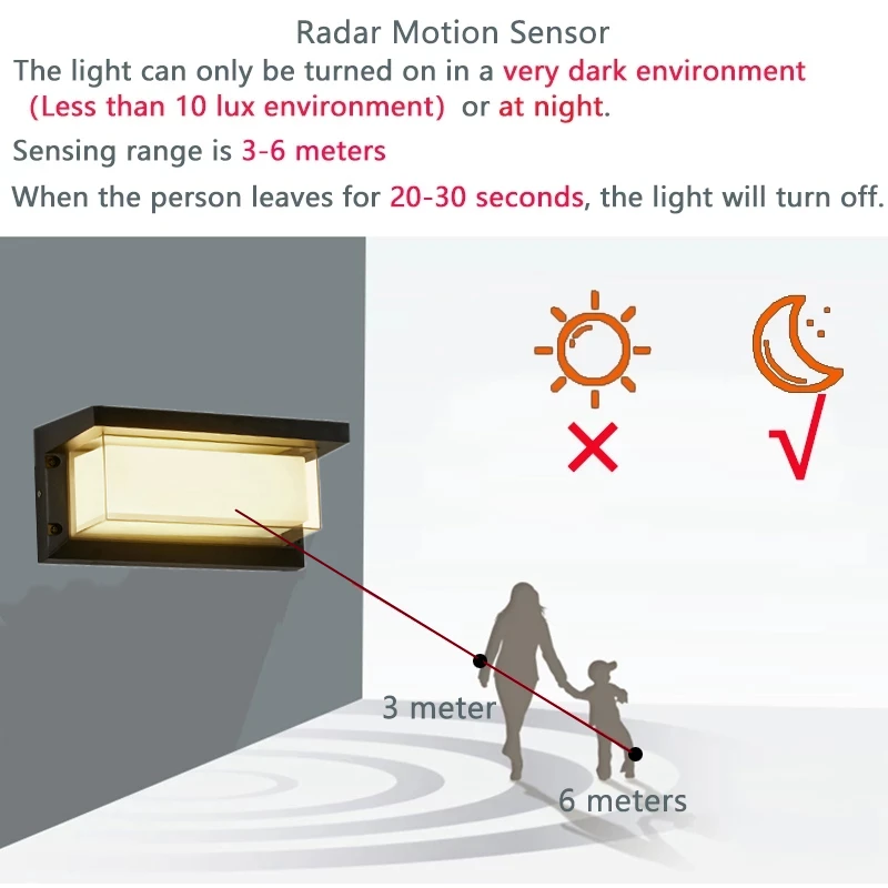 Датчик заключается в том, что после подключения лампы к 85-265 в лампа не будет светильник в течение дня.Ночью, Человек идет кДальность 3-6 метровОт лампы,Светильник включен. После того, как человекЛистья3-6 метров,ВыключитьЛампаПосле20-30 секунд.