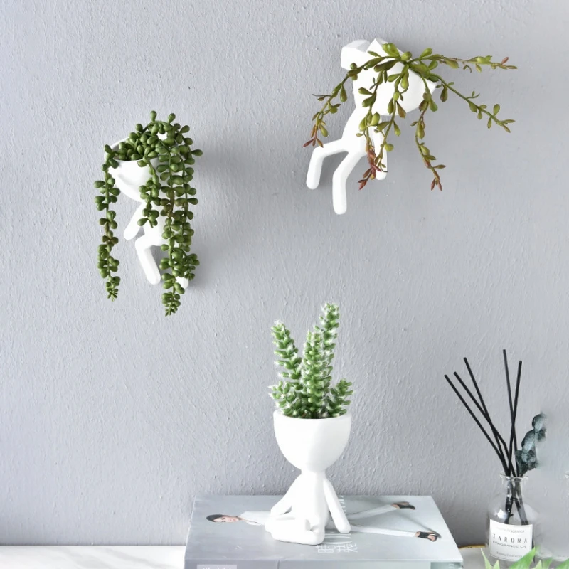 INS абстрактный скульптурный портрет белый цветочный горшок расположение цветка модель комнаты мягкий постер с орнаментом маленький белый человек