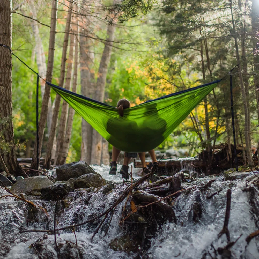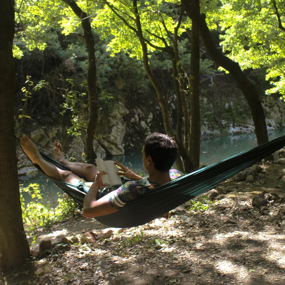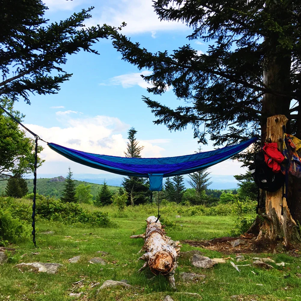 * 4. [Легкая и Чрезвычайно легкая установка]-гамак с парашютом идеально подходит для кемпинга, походов, альпинизма, путешествий, выживания в чрезвычайных ситуациях и любых приключений! Занимает несколько минут, чтобы настроить и упаковать в удобный маленький интегрированный мешок для всех.