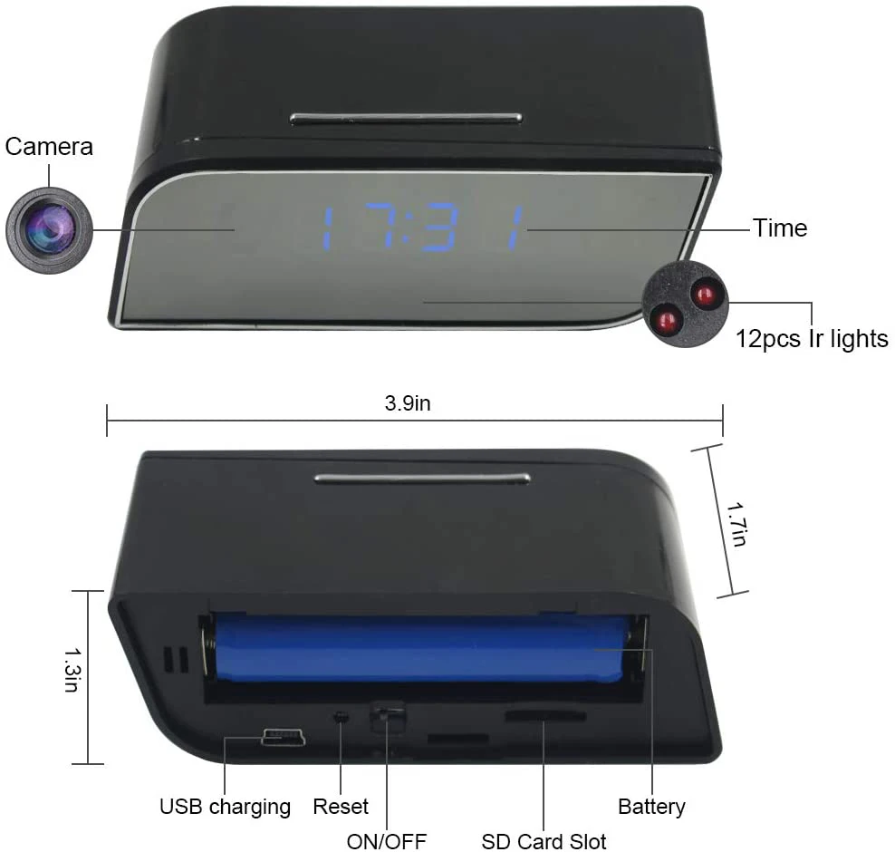 1.[Мини-камера в часах]: HD 1080P Wifi камера Будильник Обнаружение движения/циклическая запись домашняя камера наблюдения s