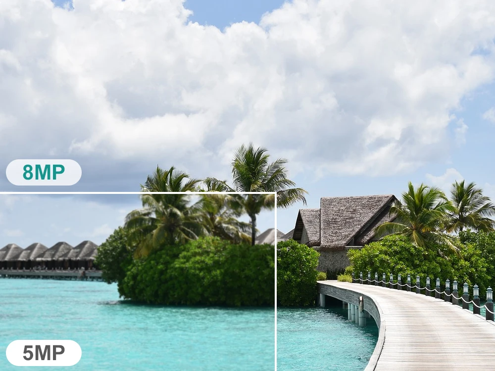 Более высокое разрешение означает больше деталей изображения, чтобы быть captured.8 мегапиксельная Высокая решительность гораздо четче, чем 5 Мп и 1080p.