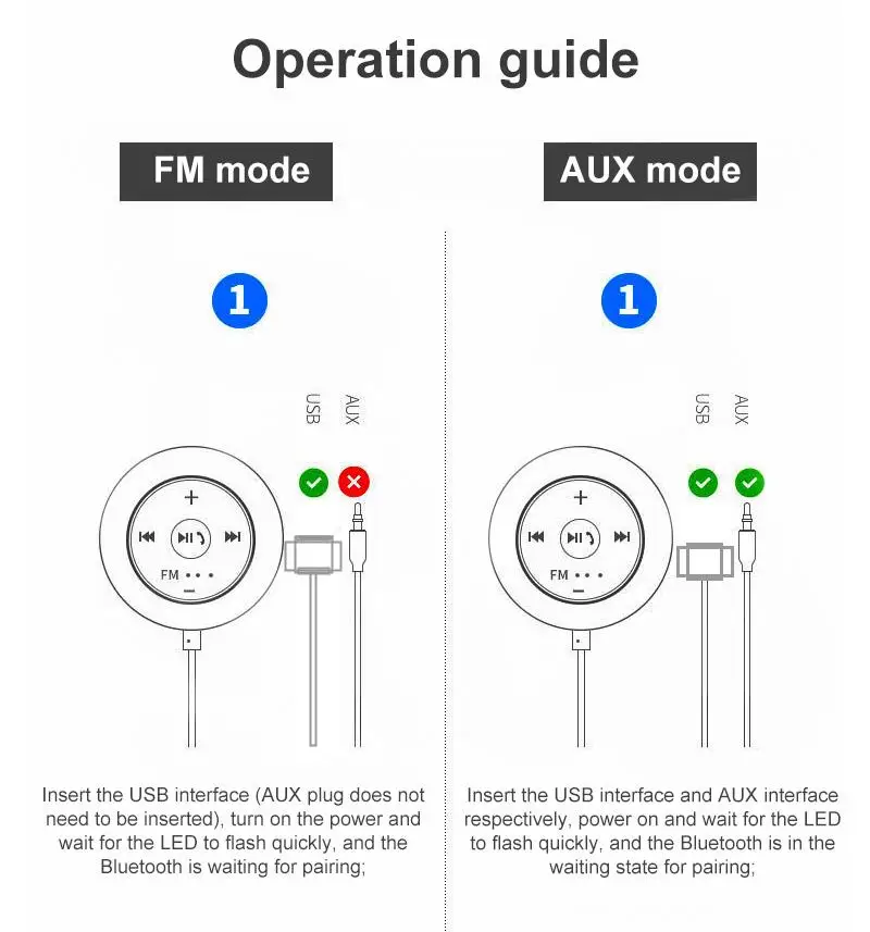 Воспроизведение, пауза, Предыдущая песня, следующая песня; Ответ и отклонение звонков; Высококачественный микрофон встроен в приемник, автомобильный комплект громкой связи обеспечивает простое решение для ответа и приема телефонных звонков и потоковой передачи музыки с телефонов с поддержкой Bluetooth во время движения.