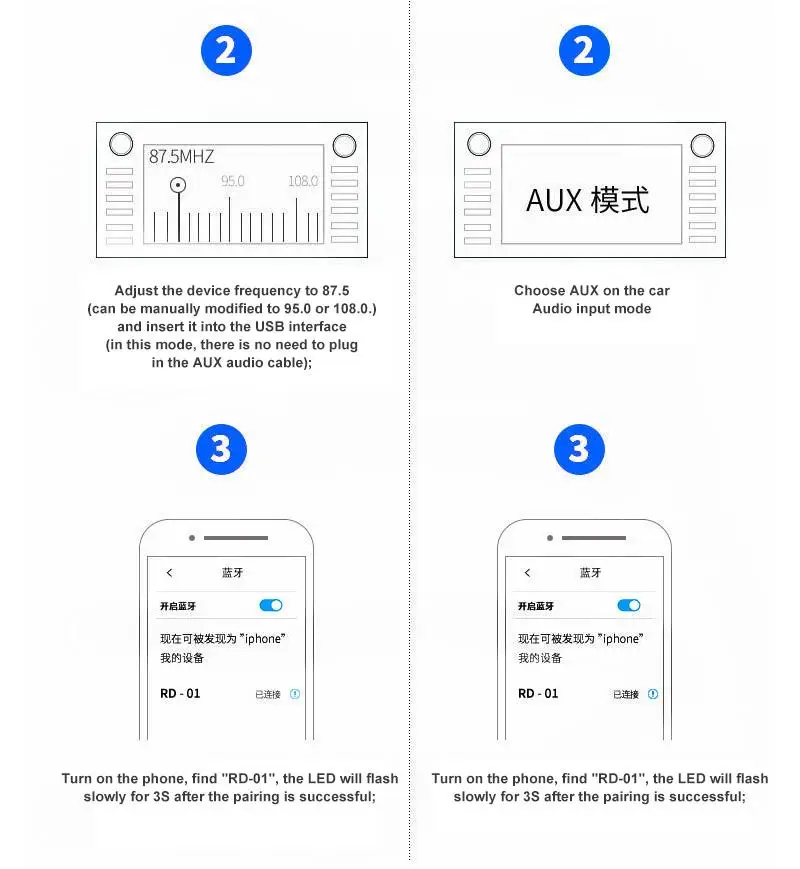 Дополнительные функции с Bluetooth fm-передатчиком, поддержка FM частоты 87,5, 95,0 и 108,0 МГц. Если ваш автомобиль не имеет 3,5 мм разъём подачи внешнего сигнала Aux-in порт, вы можете использовать его в качестве FM передатчик для того, чтобы наслаждаться музыкой с сотовом телефоне или планшетные компьютеры на основе вашего автомобиля или домашние стерео колонки системы.