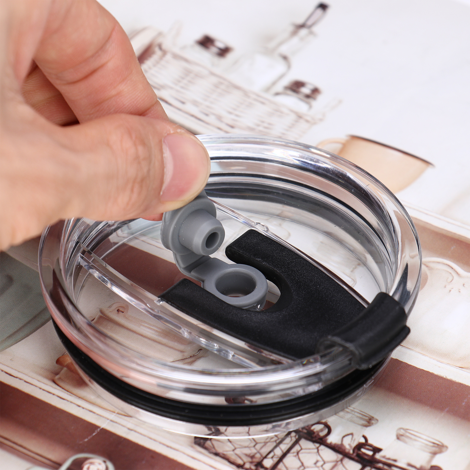 Край крышки чашки обшит силиконовой прокладкой, чтобы предотвратить брызги и разливы, когда чашка перевернута, что герметично удерживает ваш напиток изолированным дольше.
