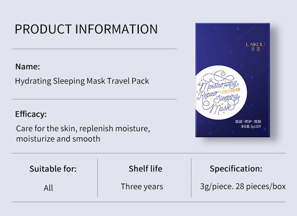 Название продукта: увлажнение восстановление маска для сна дорожный пакет