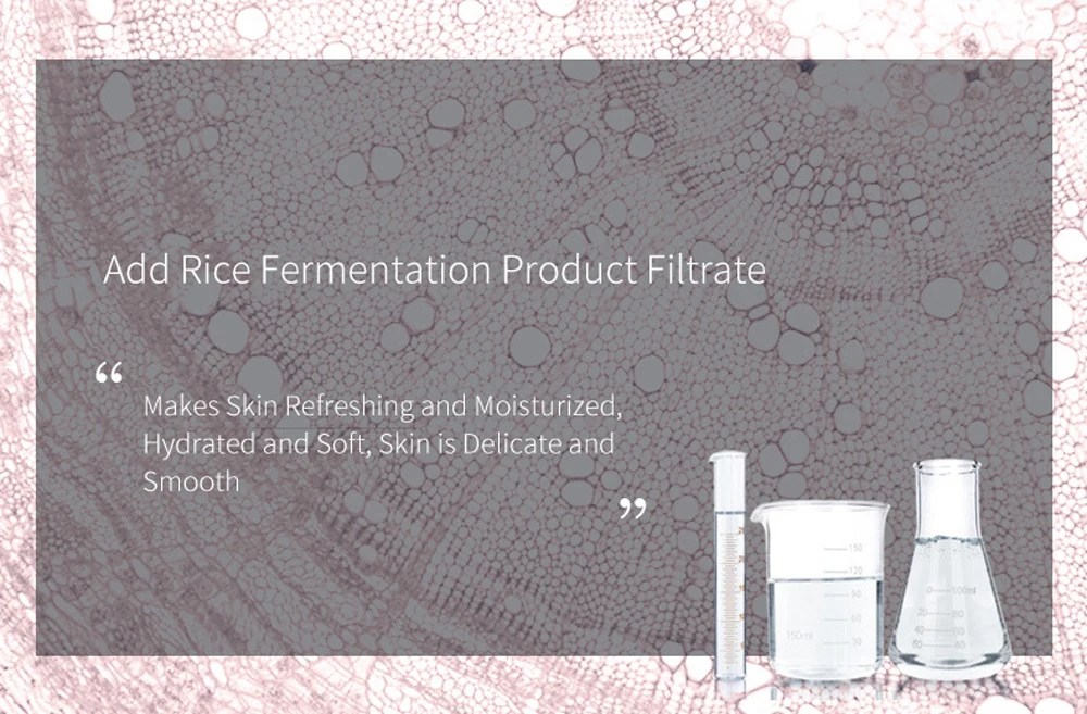 3. Добавьте фильтрат продукта для ферментации риса, чтобы сделать кожу упругой и жирной, увлажняющей и не жирной, восстанавливая кожу, восстанавливая состояние кожи, увлажняя и увлажняя, кожа влажная, эластичный и блестящий.