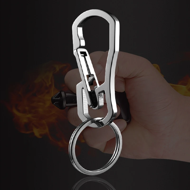 Просто нажмите на маленький рычаг, чтобы получить доступ к верхним и нижние крючки для ваших ключей и других предметов edc. Инновации Весна strutructure значительно повысить срок службы благодаря держателю ключей, он может быть нажата около 150000 раз.