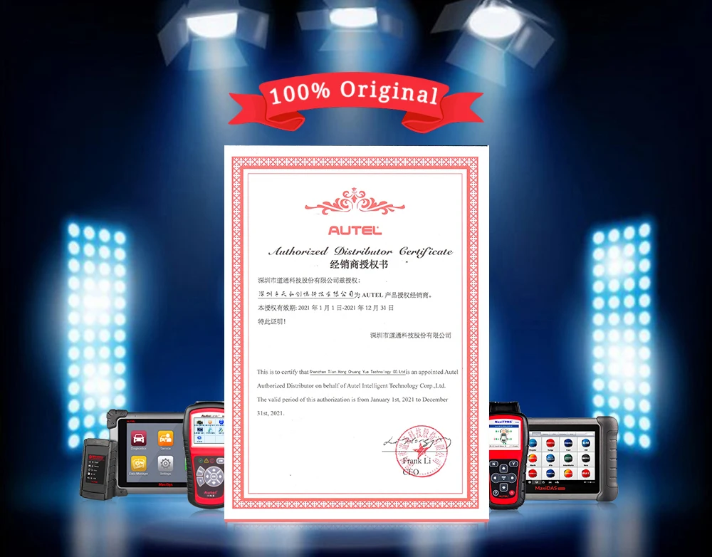 Мы являемся авторизованным дистрибьютором бренда Autel, 100% Новый оригинал Autel с обновлением программного обеспечения и гарантией. Если нет, то будет предоставлена двойная компенсация!