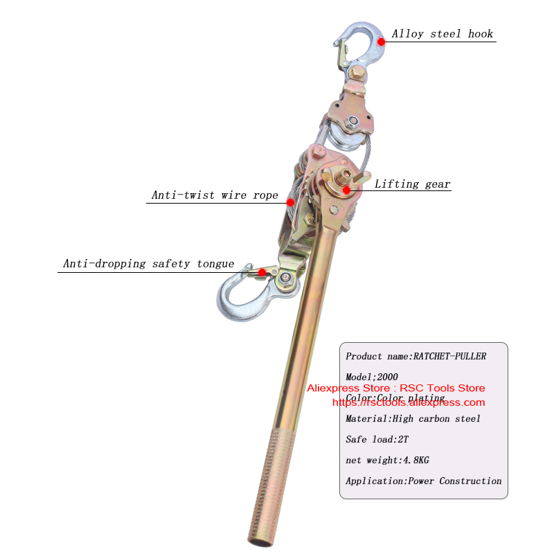 Храповая тросовая Съемная лебедка используется в строительстве электропередачи, телекоммуникационной инженерии, затягивании провода.