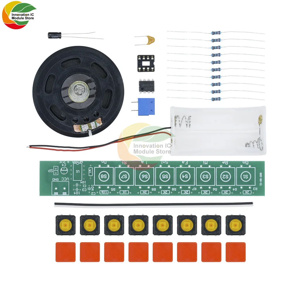 Масштаб цепи может производить различные звуки, в то время как разные клавиши соответствуют различным шкалам. Игра электронного органа заключается в использовании пальцев для нажатия разных клавиш для производства различных весов. Принцип заключается в том, что цепь IC555 соединена с осциллятором, частота колебаний которого определяется сопротивлением цепи (R1- R10), поэтому различные звуки будут генерироваться из-за различных клавиш.